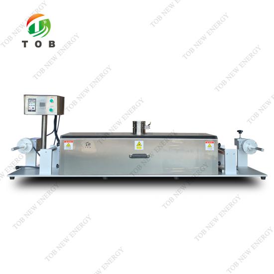 la machine de revêtement continue de bureau tob-tbj-180c est une petite machine de revêtement à rouleau pour la recherche en laboratoire, elle est assemblée par un dispositif de revêtement de haute précision, adapté aux institutions, aux universités et aux travaux de recherche sur batterie à l'échelle pilote.