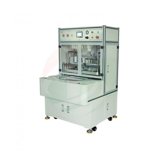 2. la plaque tournante d'alimentation est divisée en positions de scellage et de chargement-déchargement, placez d'abord la cellule de poche sur la position de chargement-déchargement, démarrez le bouton à double point, la platine tourne en position de scellage, la chambre de haut en bas se ferme, formez une cavité de scellage, terminez vide, perforation et scellage à chaud, recommencez, la cellule de poche scellée est envoyée par le plateau tournant.